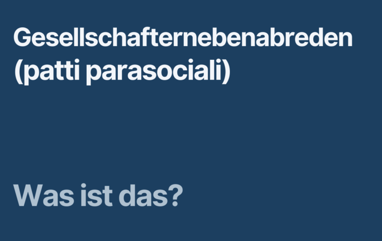 Was kann in Gesellschafternebenabreden geregelt werden? Die Regelungsbereiche sind vielfältig, etwa das Stimmverhalten zu gewissen Tagesordnungspunkten in der Gesellschafterversammlung, das Vorgehen bei der Übertragung von Beteiligungen, die Verpflichtung, die derzeitige Eigentümerstruktur beizubehalten u.ä.m.